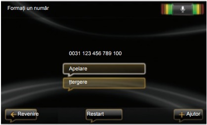 – sistemul vă indică numărul introdus, spuneţi „Apelare” pentru a apela numărul dictat sau „Ştergere” pentru a dicta un alt număr.