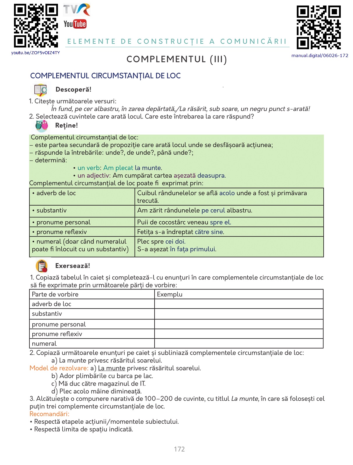 Limba și literatura română clasa a VIII-a - Complementul circumstanțial de loc